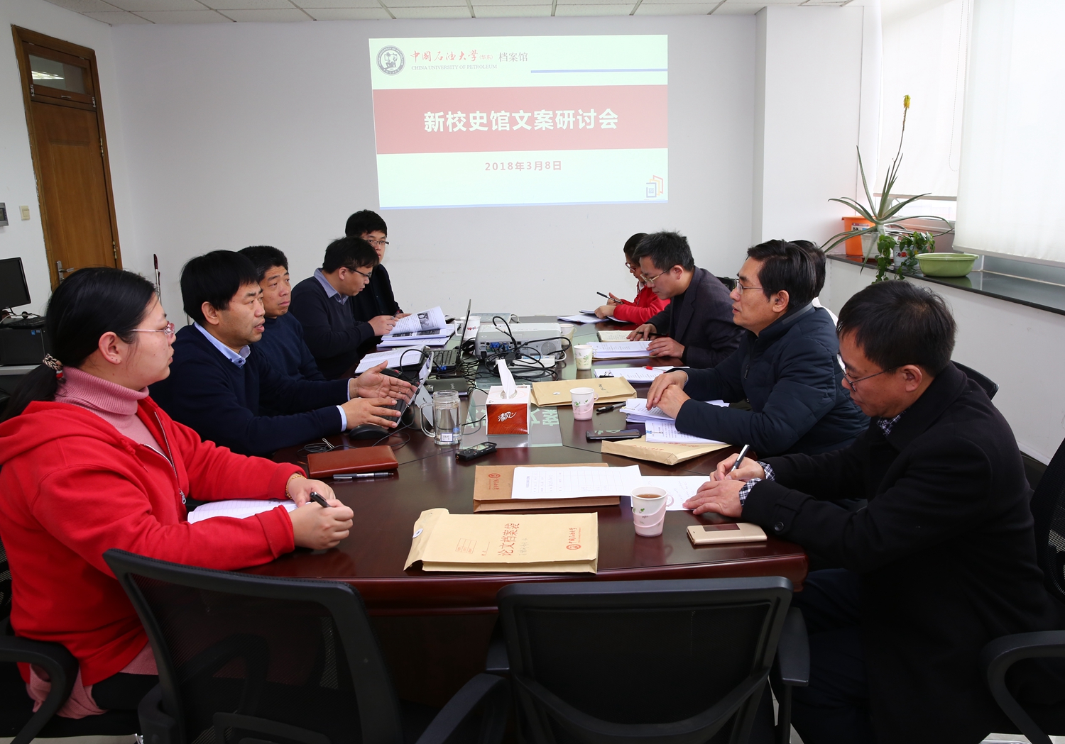档案馆工作人员经过前期的实地调研和业务研究,积极汇集和掌握与学校历史发展相关的各种信息,在石油高等教育的发端、援建石油院校、参加石油会战及助力各大油气田的勘探和开发等方面形成了新的认识与理解,调整补充了几个历史时期的校史大纲,在寒假期间加班加点完成建校前夜、北京石油学院时期、华东石油学院时期、石油大学时期的校史馆文案初稿并送与校内专家,专家组成员利用假期对文案进行了审阅。