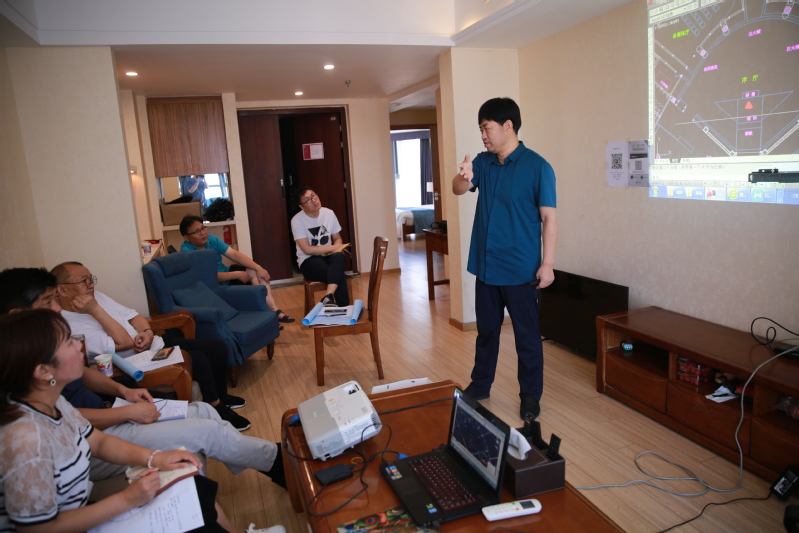 2020年07月28日,因疫情管控,档案馆人员与设计人员在校外会议室研讨。