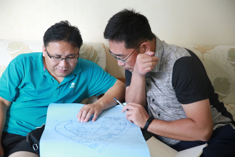 2020年07月29日,工作人员仔细阅读新校史馆功能分区图纸。