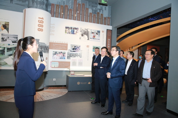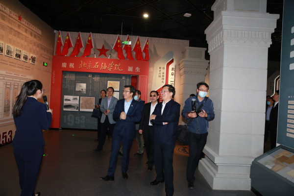 中国海洋石油集团有限公司办公室有关同志,中国石油大学(华东)党委办公室、校长办公室,学生就业指导中心,研究生院,发展规划处,教务处,科技处,人事处,合作发展处,教育发展中心负责同志陪同参观了校史馆。