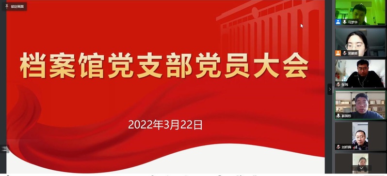 档案馆党支部按照学校《关于召开2021年度基层党组织组织生活会和开展民主评议党员的通知》部署要求,于3月22日线上召开党召开2021年度组织生活会和民主评议党员大会,会议由支部书记靳国栋主持,档案馆全体党员参加。