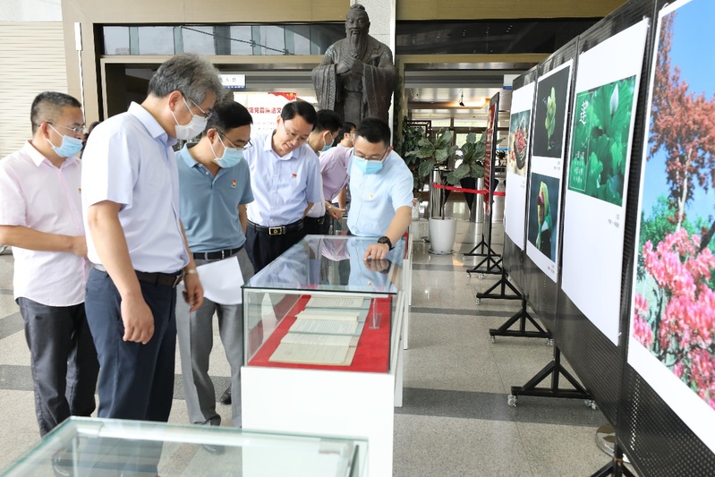 图书馆党委书记李国、馆长沈刘峡陪同纪委党支部考察调研图书馆东馆,向到访人员介绍东馆的建设理念、空间布局、读者服务和资源建设等方面的情况。随后,3个党支部共同参观了在总馆大厅举办的“廉洁文化展”。廉洁文化展参展作品有图书馆、档案馆、期刊社职工的硬笔书法、摄影作品,有校史上党风廉洁有关的珍贵档案实物,同时特邀学校书画院作品参展。这些展品从一个视角反映了广大职工崇尚廉洁、奉行廉洁的价值导向和坚定追求。