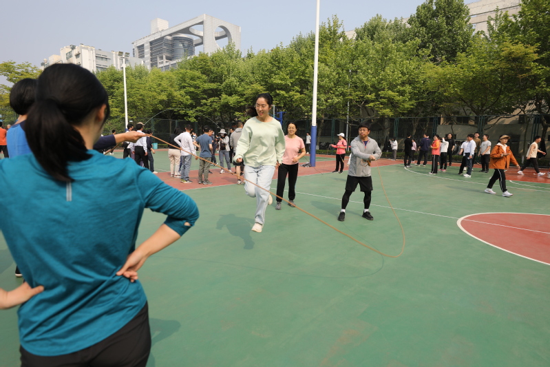 张大宇、马梦华、刘洋、吴颖昊参加8字跳绳趣味项目