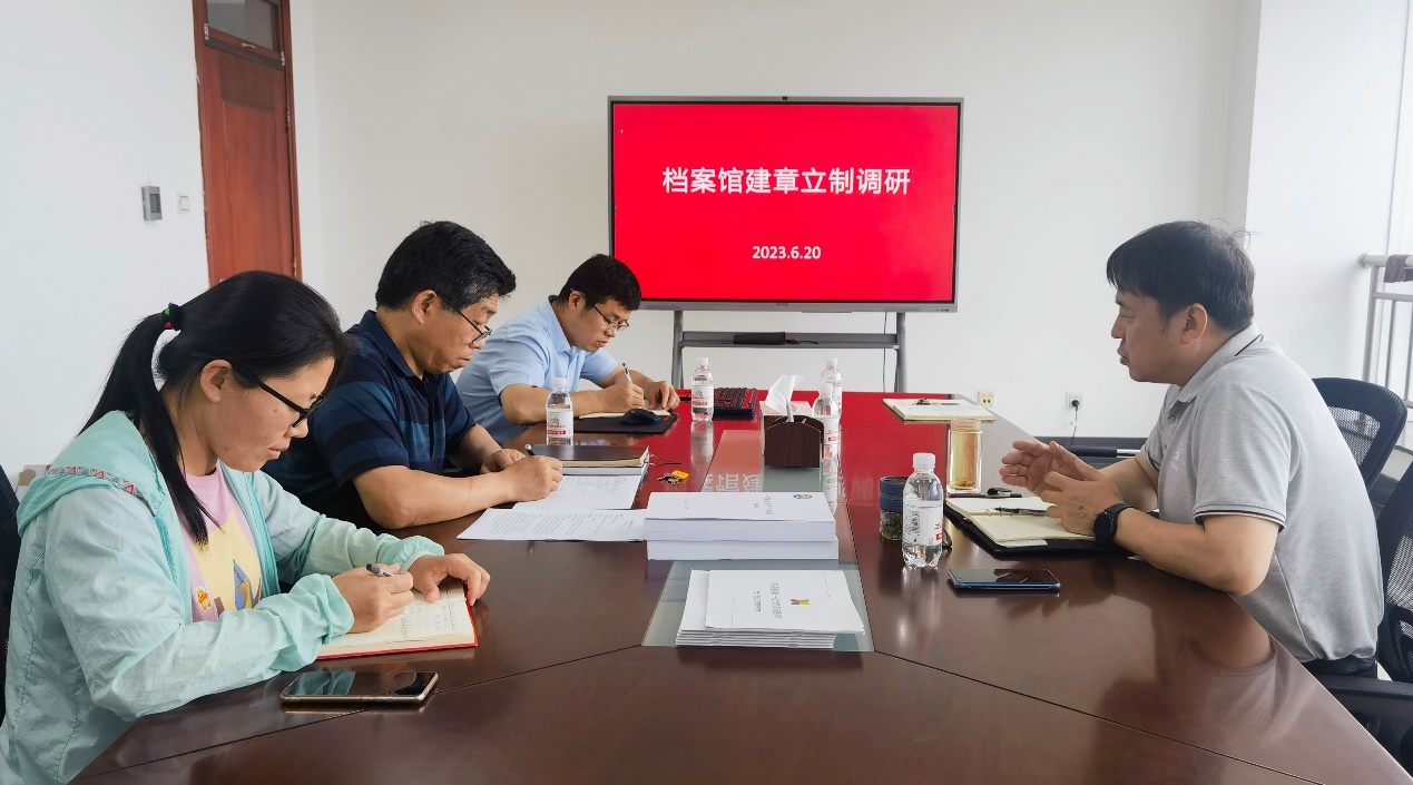 靳国栋介绍档案馆建章立制工作的前期工作开展情况、目前正在推进的工作、下一步工作计划和所要达到的工作目标。各部门负责人分别结合所负责的工作对建章立制情况进行了汇报。