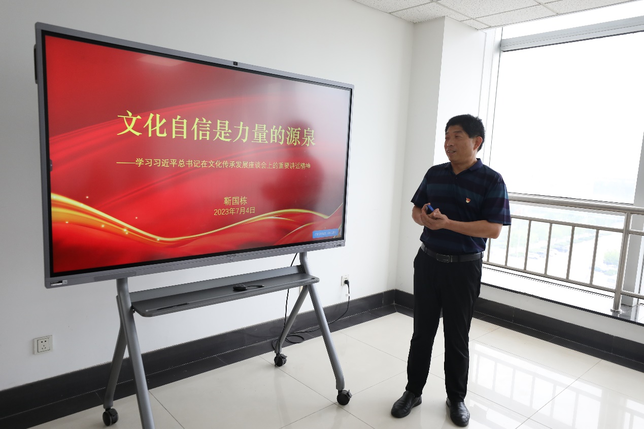 为扎实开展学习贯彻习近平新时代中国特色社会主义思想主题教育。7月4日,档案馆党支部书记靳国栋为全体党员上主题为“文化自信是力量的源泉”的党课。