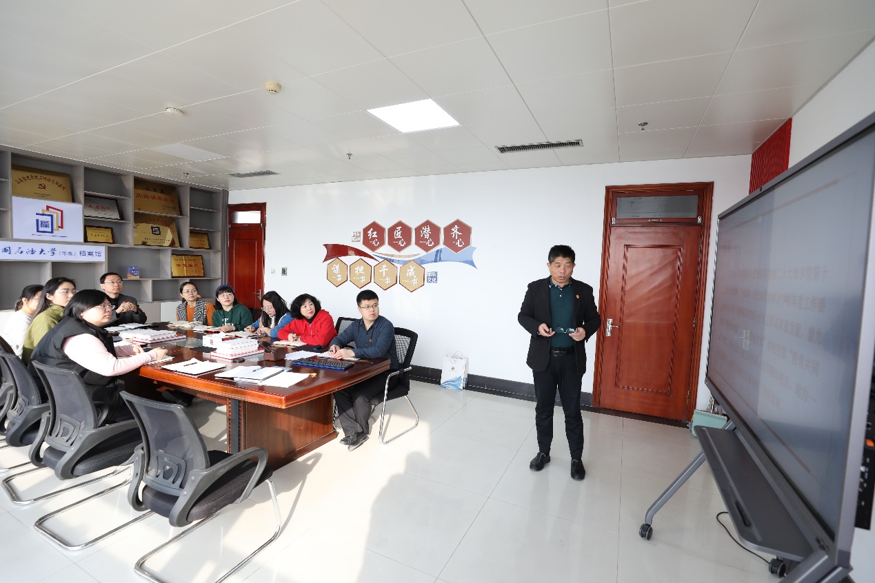 会上,档案馆党支部书记靳国栋《党建引领、凝聚合力、赓续文脉、资政育人》为题作了支部工作汇报。2023年,档案馆深入贯彻落实党的二十大和学校第十二次党代会精神,紧密结合学校年度工作要点和中心任务,创新推动档案与校史工作高质量发展,着力推进“数字档案馆”、“智慧校史馆”和校史馆“功能共同体”建设,圆满完成年度工作任务,在70周年校庆、助力一流文化建设、推进立德树人方面取得了良好成绩:校史馆入选全国科学家精神教育基地、山东省党员教育现场教学基地,全流程参与落实校庆工作方案,编纂完成《中国石油大学校史》、《征程——中国石油大学(华东)年谱(1953-2023)》、《风雅石大——中国石油大学(华东)校藏书画精品》,全力参与和支撑系列校庆活动,上线中国石油大学历史文化资源数字平台、“赋能红色校史资源 铸就时代能源英才”收录全国高校宣传工作创新案例等。