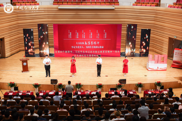 新书发布会内容丰富多彩,以图文展、专题片、诗朗诵等多种形式,深情歌颂石油高等教育工作者的光辉事迹。我校档案馆推出“致敬·风范——弘扬科学家精神、传承教育家精神”展览,与会人员通过手稿、笔记、教案等珍贵档案,近距离体会历代教育工作者言为士则、行为世范的躬耕态度和为党育人、为国育才的责任担当。“他们用汗水和泪水、用情怀和担当筑起了共和国石油高等教育体系,培养石油科技人才遍地开花。追寻他们的足迹,铭刻他们的身影,仰望他们的风华,致敬他们的贡献!”校史宣讲团学生代表的集体诗歌朗诵《礼赞——献给中国石油高等教育工作者》让现场师生深深感动。